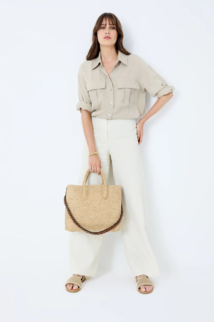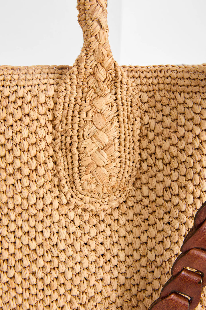 - Materials: 100% RAFFIA natural, this organic cotton-lined bag combines the softness and strength of a natural, durable material. The removable shoulder strap is made of vegetable-tanned zebu leather.