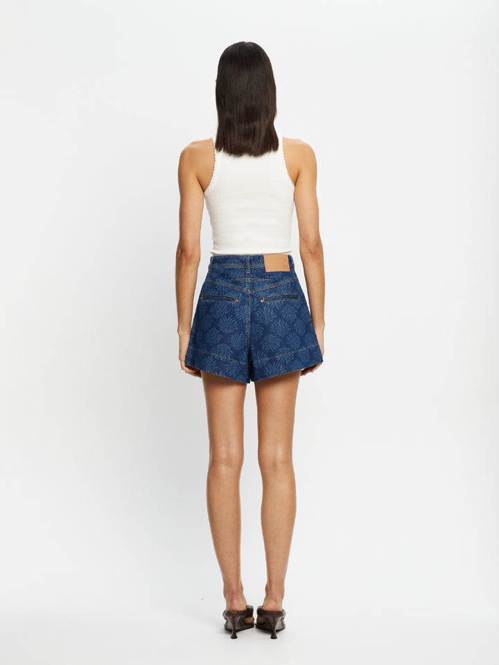 The Evita Denim Short is an A-line silhouette, crafted in a printed coral design. Featuring Jett pockets, centre-back detailing and finished with signature hardware, this timeless style blends everyday ease with elevated edge. Pair with the Marla Denim Shirt for a polished co-ord look, or style with a blouse and heels for evening occasions.
