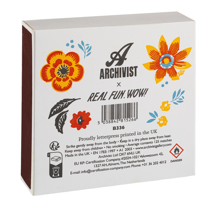 These matches are made from natural products and may contain inherent structural flaws. Whilst Archivist takes time to test the matches, they cannot reasonably test every single one, so strike the match gently (easy does it!) and away from you, over non-combustible surfaces.