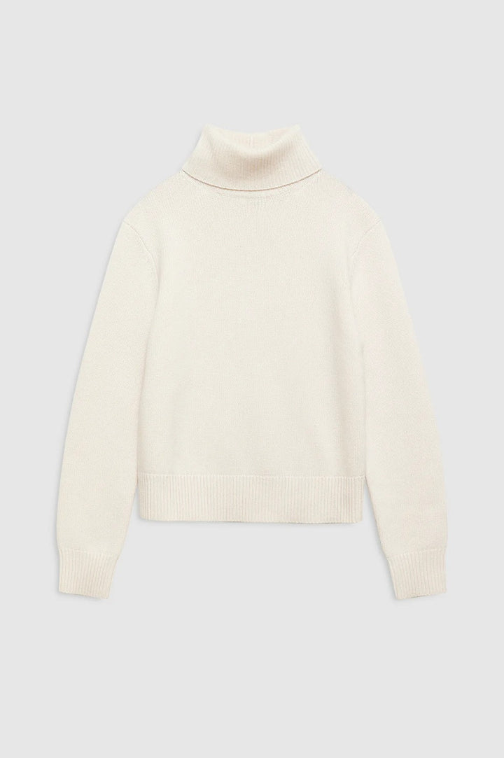 A timeless, everyday turtleneck featuring refined ribbing at the neck, cuff, and hem in ivory.