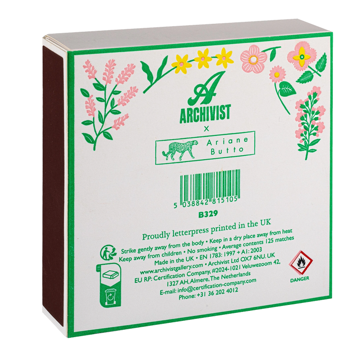 These matches are made from natural products and may contain inherent structural flaws. Whilst Archivist takes time to test the matches, they cannot reasonably test every single one, so strike the match gently (easy does it!) and away from you, over non-combustible surfaces.