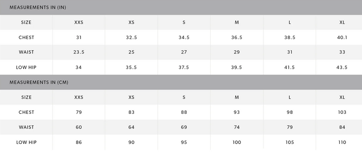 Model Measurements: Height: 5'9", Bust: 30", Waist: 23", Hips: 34"