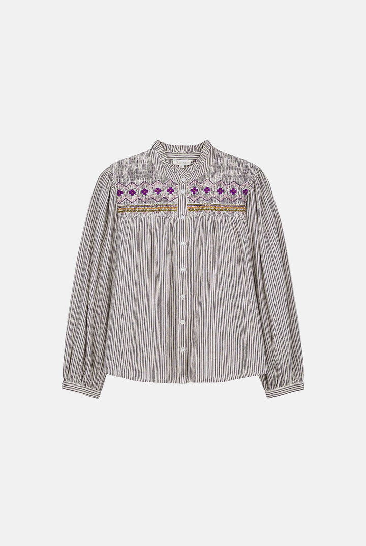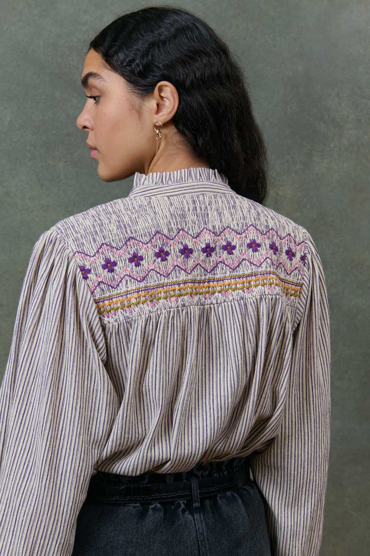 Shirt Louise Cream Purple Stripes - Louise Misha